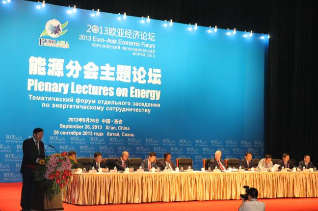 9月26日,2013歐亞經濟論壇能源分會及主題論壇在曲江國際會議中心大禮堂拉開帷幕。本次分會圍繞新能源及技術、低碳經濟和生態環境等主題展開研討。副省長李金柱出席并致辭。石羊集團做為西安經開區企業代表在集團項目投資部總經理傅巧艷及總裁助理趙超的帶領下一行7人參加了此次盛會。
