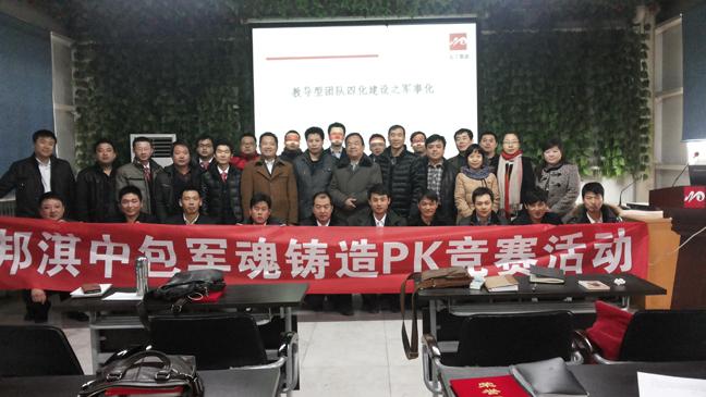2月7日晚,為檢驗軍魂培訓落地效果,37名參訓人員在新療方形會議室分石羊隊、西北狼隊、亮劍隊、勇士隊進行了團隊風采展示,他們口號雄壯有力、隊伍整體劃一、彰顯訓練有素,最后,以景春勝為組長的內務勇士隊勇拔頭籌,石羊隊及女子舞蹈隊分獲軍魂PK第一名及特別獎;在個人風采展示環節中,大家盡展才華、當仁不讓,唱歌、朗誦、笑話不一而足、你方演罷我登場,齊永峰、張少偉、馬小鵬分獲前三。8日早,在學習了中包“八大管理體系”后,進行了隆重的團隊宣誓活動,為進一步提升銷量、鞏固省內第一、早日稱雄西北鼓與呼!此次活動達到了凝聚人心、匯聚力量的目的,頒獎、合影后,邦淇中包企業軍魂鑄造培訓營活動宣告圓滿結束。