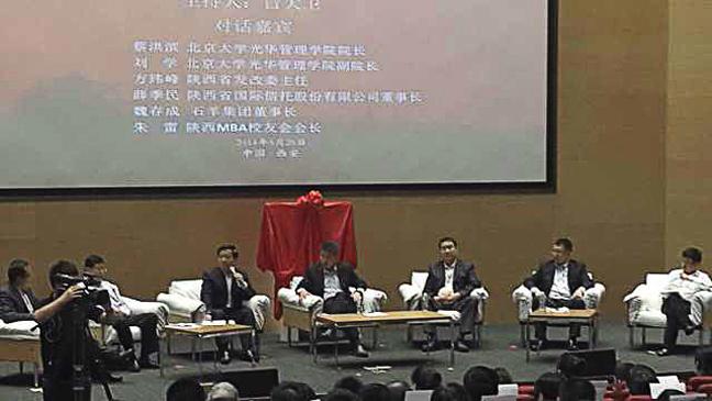 全國政協(xié)副主席韓啟德出席并致辭,省長婁勤儉,北京大學校長王恩哥,省委常委、西安市委書記魏民洲,光華管理學院院長蔡洪濱為分院揭牌。石羊集團董事長魏存成出席此次活動并作為特邀對話嘉賓與北大光華學院院長蔡洪濱、北大光華學院副院長劉學、陜西省發(fā)改委主任方瑋峰等教授和專家進行“新絲路,新起點”西部發(fā)展論壇,參加高峰對話。光華管理學院黨委書記冒大衛(wèi)博士擔任圓桌論壇主持人。石羊集團董事長魏存成十幾年間六度在北大光華學習,他以企業(yè)家的角度,講述了絲綢之路經(jīng)濟帶建設中,如何提升企業(yè)實力,并總結(jié)北大的學習助他驗證過去、修正未來。