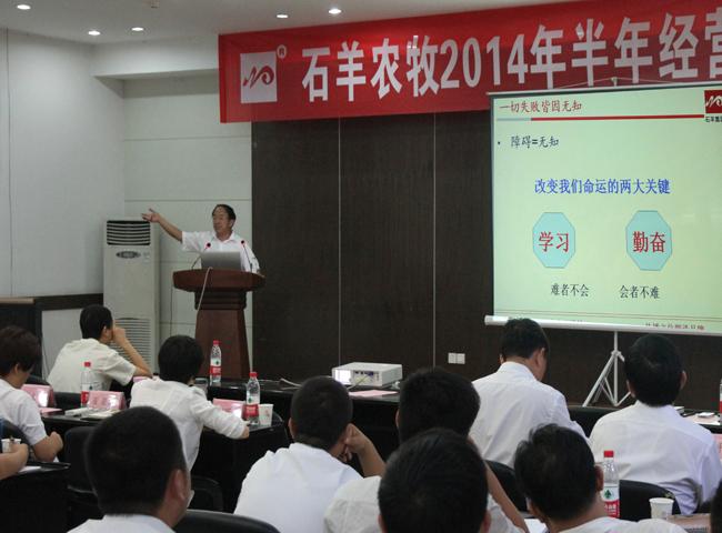 7月3日,石羊集團農牧產業2014年上半年經營檢討會在臨潼隆重召開。集團總裁常青山、集團副總裁兼農牧公司總經理韓春元出席會議,各事業部總經理、各線路負責人、各子分公司副總經理以上人員及財務線路近百人參加會議。