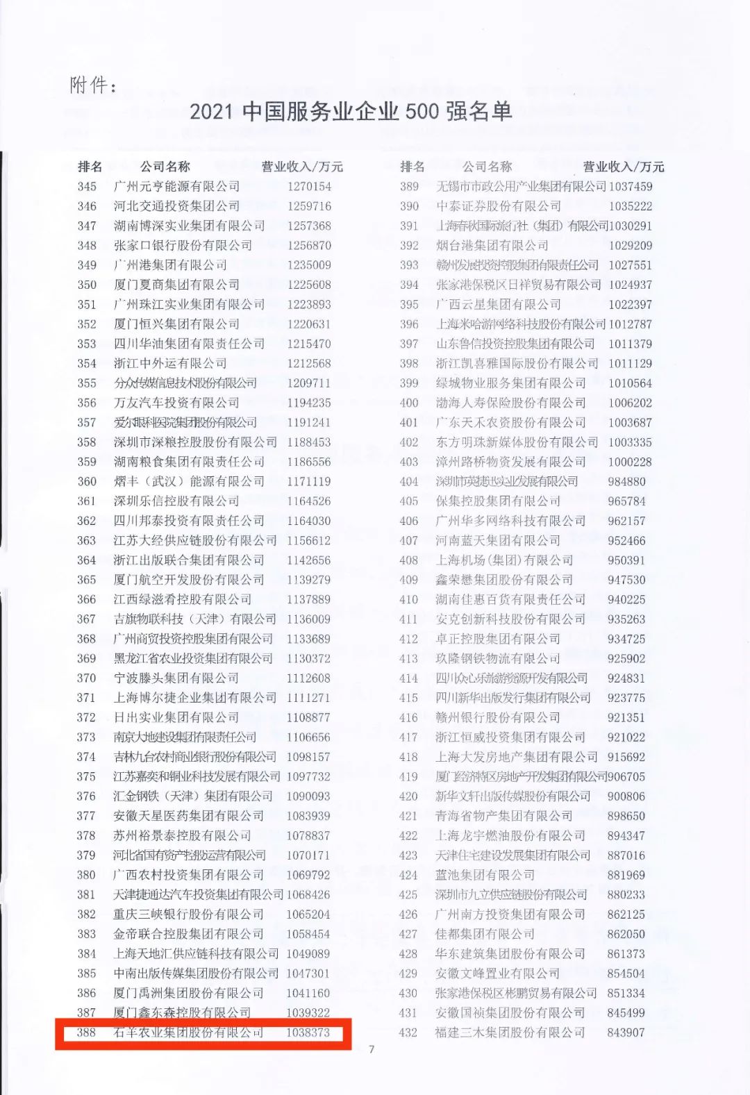 9月25日,在吉林長春舉行的2021中國500強(qiáng)企業(yè)高峰論壇上,石羊集團(tuán)憑借上年度優(yōu)異表現(xiàn)首次入圍中國服務(wù)業(yè)企業(yè)500強(qiáng),名列榜單第388位。