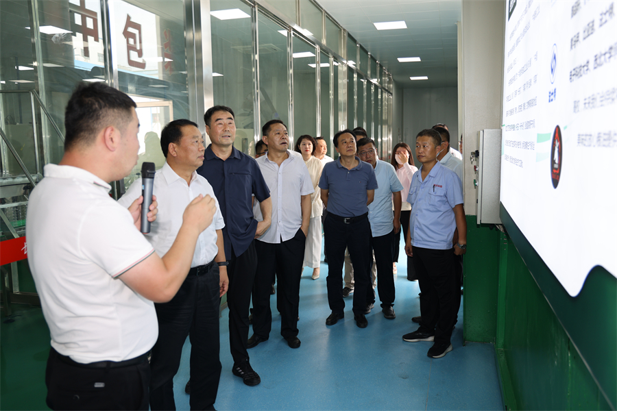 8月9日下午,陜西省工業和信息化廳黨組書記、廳長張宗科同渭南市政府、高新區管委會一行到訪石羊集團渭南長安花工廠,調研工業穩增長相關工作。