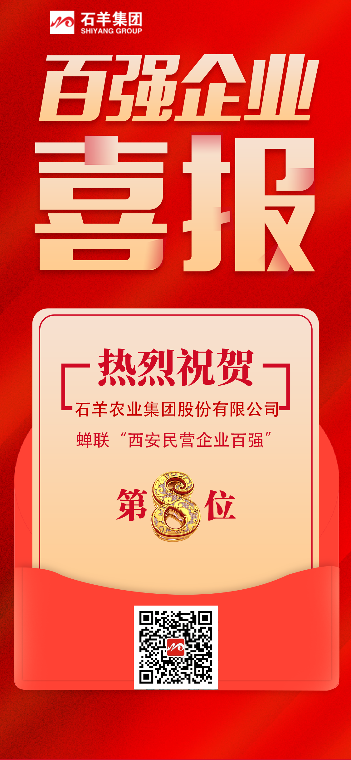 4月10日,西安市工商聯(總商會)十五屆三次執委會議于陜西賓館召開,會上對2023西安民營企業100強前20強進行授牌。石羊集團以營收總額130多億的成績位列第8名,再次蟬聯西安民營企業100強前10強。