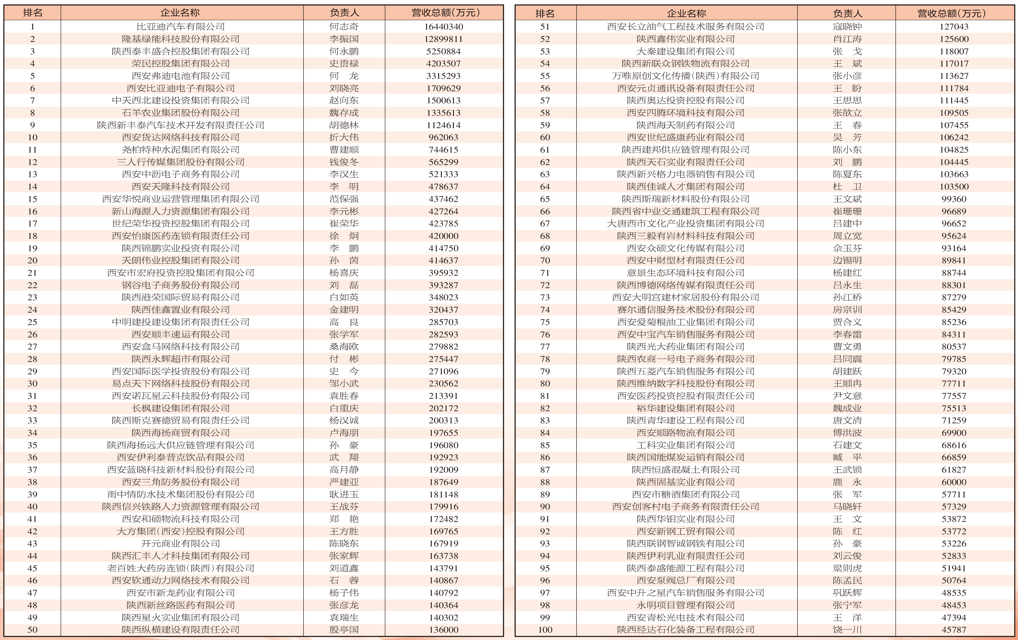 據介紹,2023西安民營企業100強評選工作是由西安市工商聯負責,在尊重企業自主申報和各區縣、各開發區,各行業異地商會推薦的基礎上,經部門聯審、社會公示等程序,以2022年企業營業收入總額降序排列產生。從營業收入總額上看,百強民企2022年營業收入總額達6427.76億元,同比增長44.44%。有9家企業營業收入總額超過百億元。