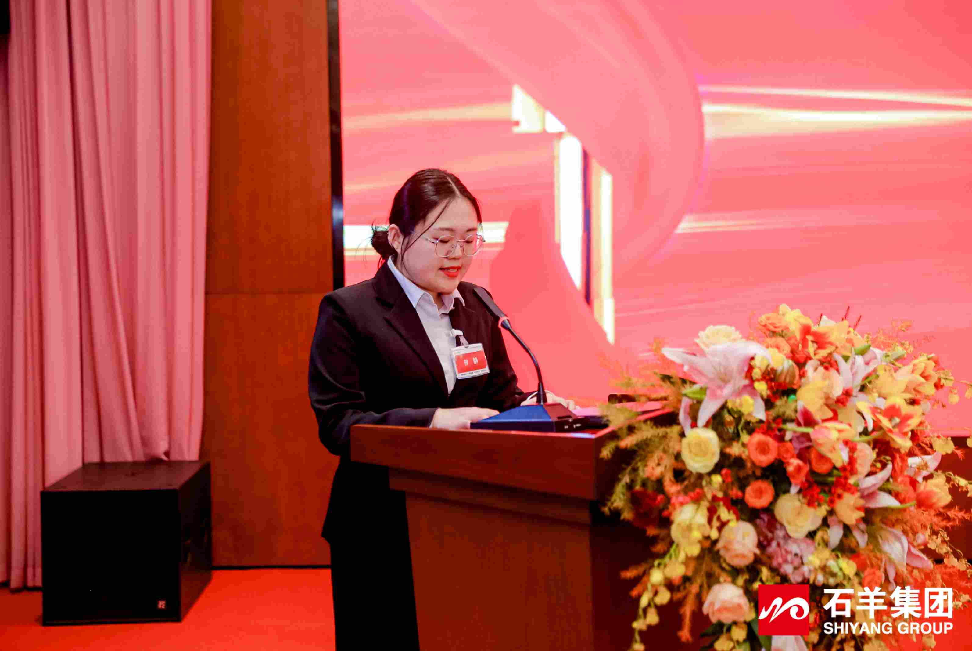 伴隨著雄壯嘹亮的國歌聲,大會正式拉開序幕。集團副總裁劉恒主持并帶領全體參會人員重溫2025年發展中的重要事件。一幕幕奮進場景的回溯,讓每一位石羊人對過去一年的并肩拼搏有了更深刻的共鳴,也為新一年的前行積蓄了精神力量。